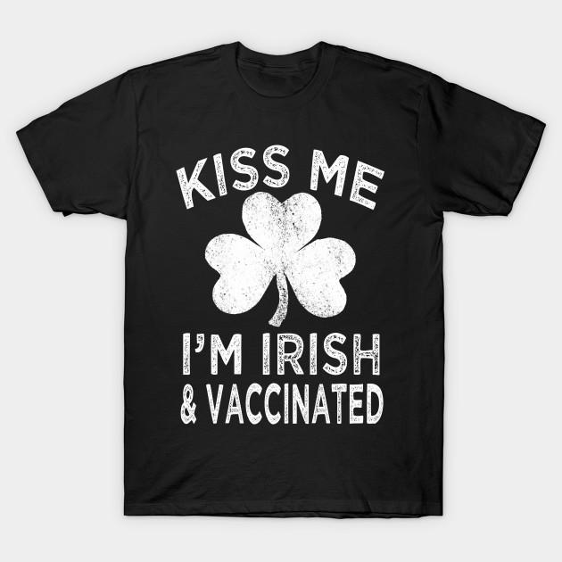 Men Black Print T-shirt Kiss Me Im Irish And Vaccinated No-Cut Transfer Paper Print Cotton Tshirt