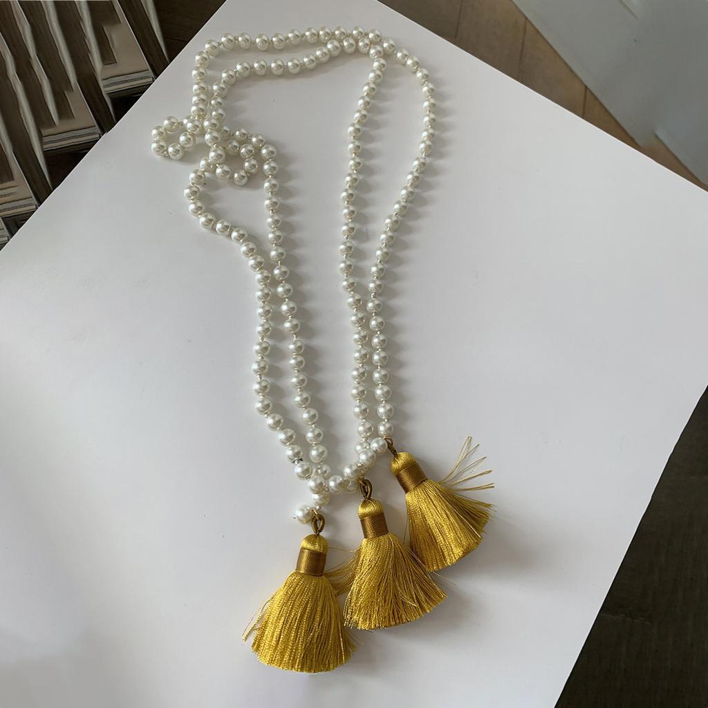 Glass pearl fringed wheat ear necklace retro national style long small fragrant style multi-purpose beaded waist chain accessories