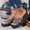 Womens Fashion Shiny Rhinstones Sandals Summer Open Toe Thick Bottom Platform Sandals Elegant Wedges Shoes Sandalias Mujer