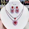 Luxury Heart Pendant Jewelry Set Earring Pink Red Necklace For Women Bridal Wedding Exquisite Fashion Zircon Party Banquet Gift
