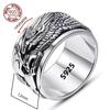 12mm Width Real S925 Silver Lucky Dragon Double Layer Rotatable Closed Dragon Ring For Man Woman Fiine Jewelry Gift