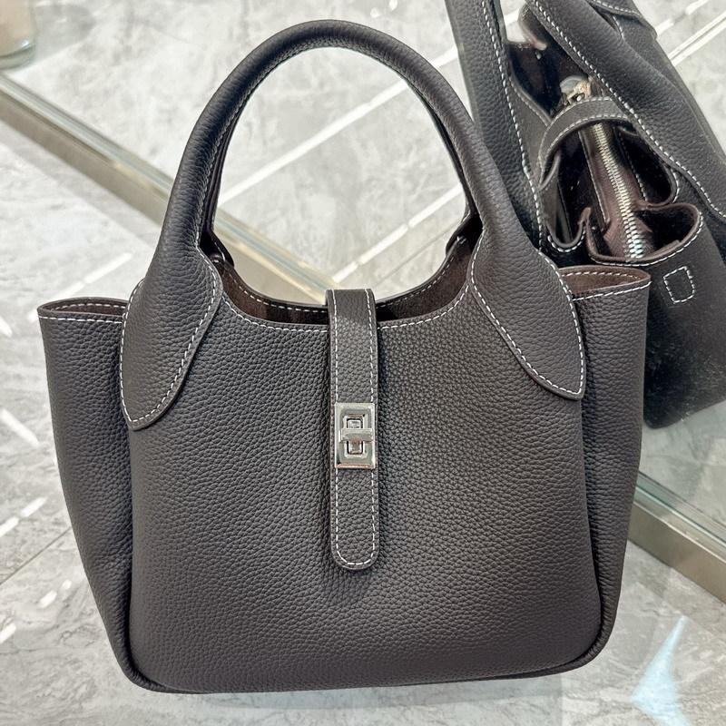 New first-layer cowhide leather high-end bucket bag vegetable basket bag single shoulder crossbody handbag women's bag
