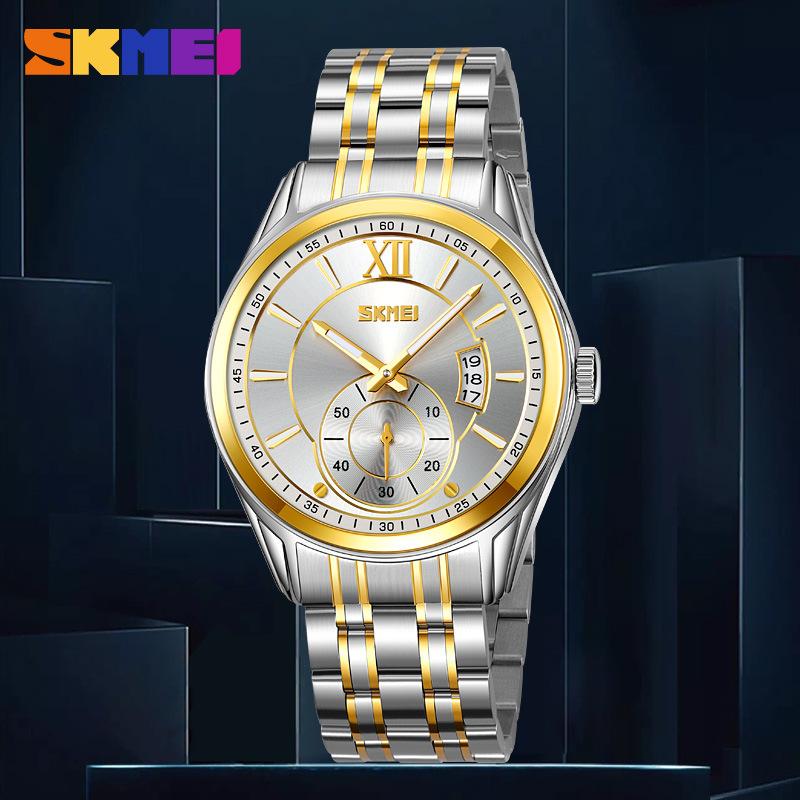 Solid stainless steel with men's watch single calendar men's watch business waterproof luminous pointer quartz watch