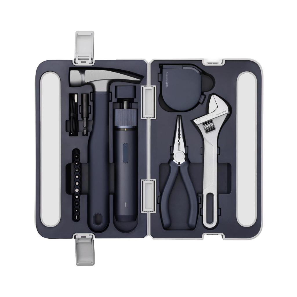HOTO Kit de Ferramentas com Chave de Fenda Sem Fio com Aço Liga S2 Torque de Precisão LED Martelo Magnético de Pregos com Borracha Bico Longo Fita Ajustável de 3M ABS Ideal