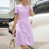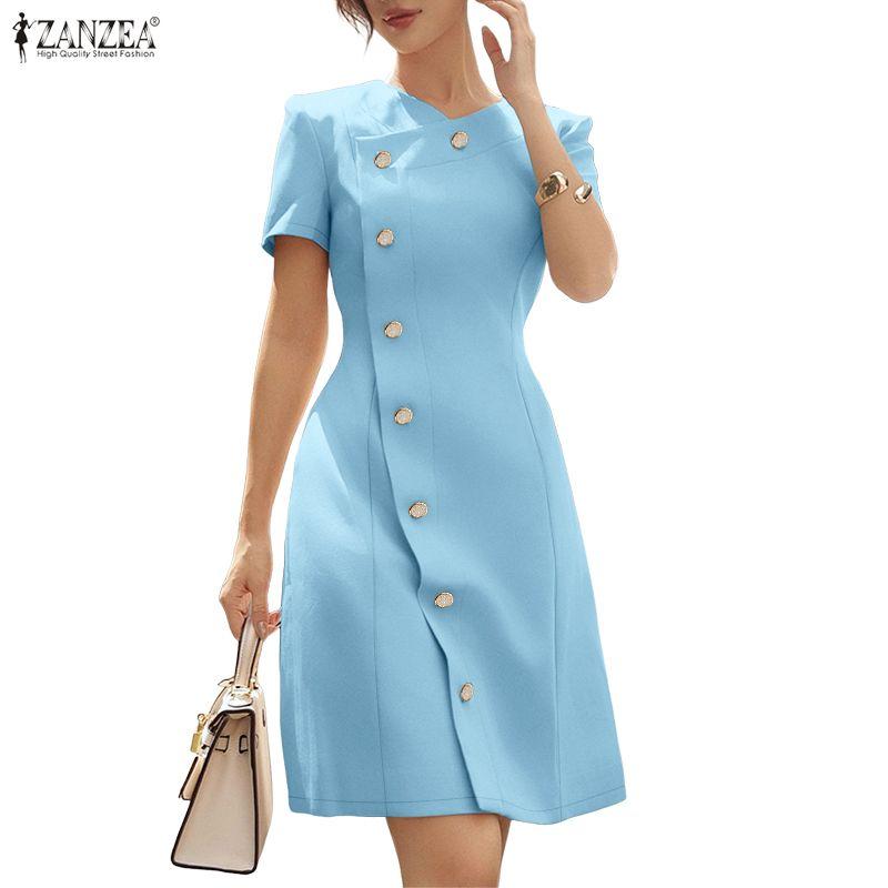 ZANZEA Vestido Casual Feminino de Verão com Decote em V e Manga Curta