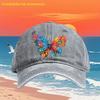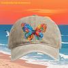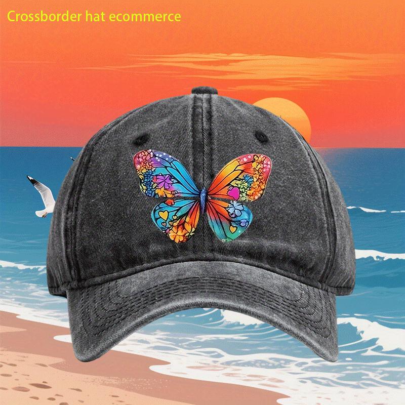 Colorful Butterfly Print Washed Baseball Cap Retro Style Polyester Adjustable Casual Outdoor Hat Unisex