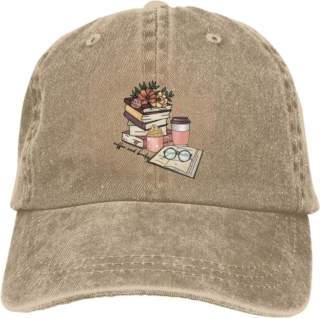 Boné de Baseball Gráfico Café e Livros Casual Ajustável Poliéster Presentes para Amantes de Livros Chapéu Esportivo