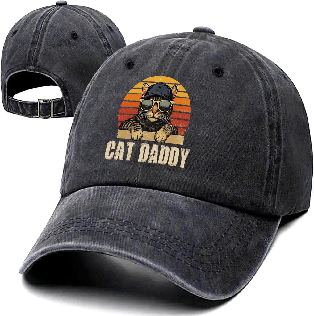 Boné de Baseball Retrô Cat Daddy Algodão Lavado Ajustável Chapéu de Exterior para Homens Presente para Pai Avô