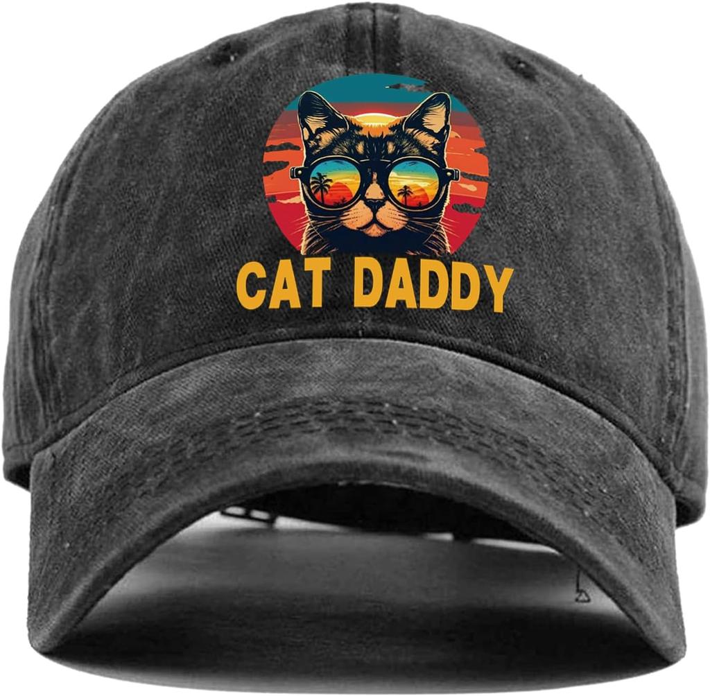 Cat Daddy Retro Sunset Graphic Baseball Cap Cotton Adjustable Dad Hat for Men