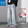 Zhenweis Men's Casual Drawstring Wide-Leg Jeans