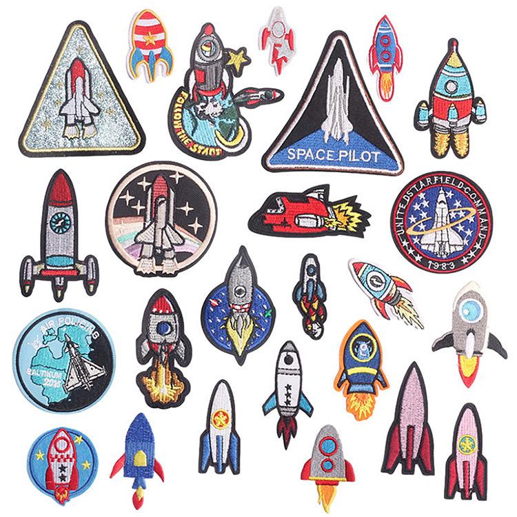 Cartoon Embroidery Cloth Sticker Small Rocket Computer Embroidery Label Spaceship Patch Sticker Bag Decoration Embroidery Chapter Boy Embroidery Stic
