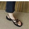Retro Roman shoes medium heel thin belt summer new British style cross belt thick heel outer sandals