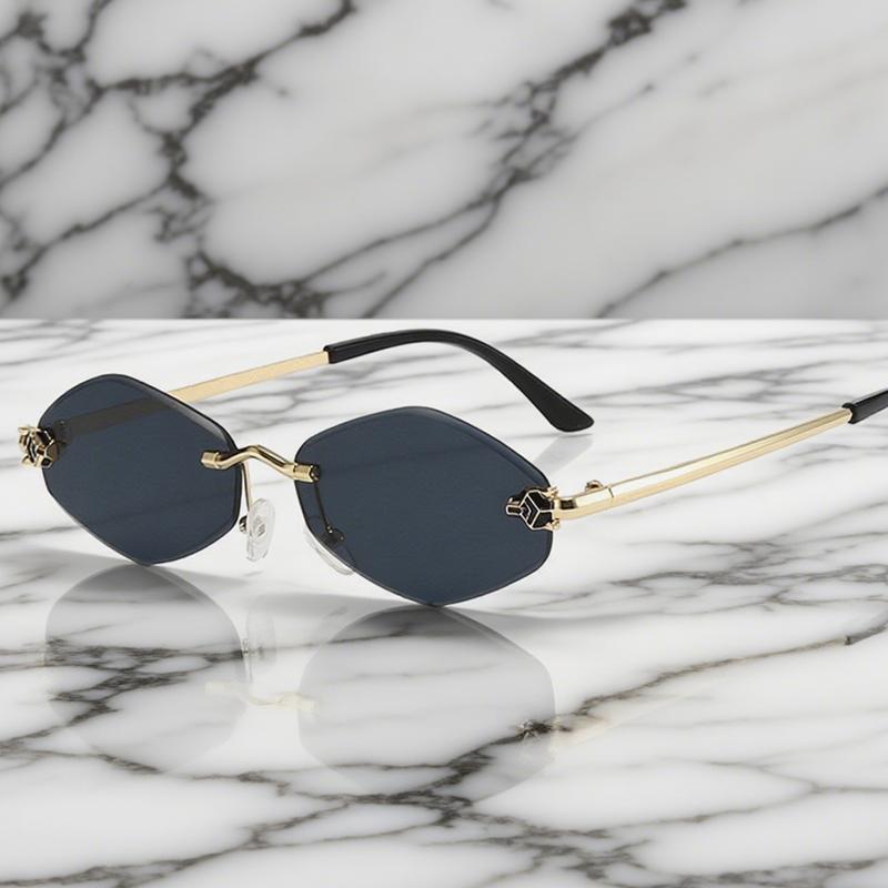 Small Frameless Sunglasses Men Women Retro Vintage Punk Style Diamond Shape UV400 Sun Glasses Travel Eyewear Trendy