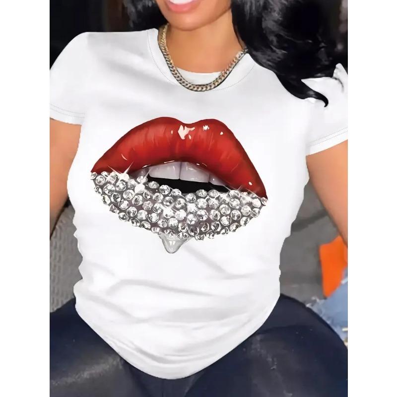European Size Spring and summer casual short-sleeved top, printed round neck T-shirt, Women's clothing