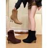 Comfortable high-heeled short boots autumn and winter new thin-heeled pointed thin boots temperament soft leather matte leather boots