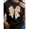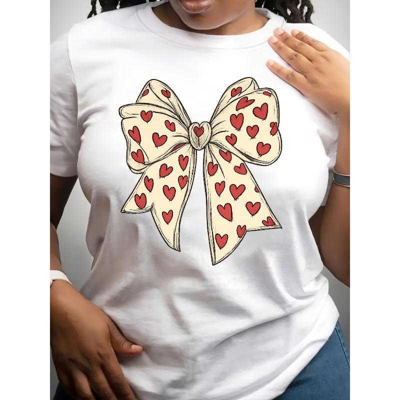 European Size Women'S T-shirts, Heart-shaped Bow Printed T-shirts, Fashionable Short-sleeved Tops for Spring and Summer, Women'S Shirts, Bow Shirts