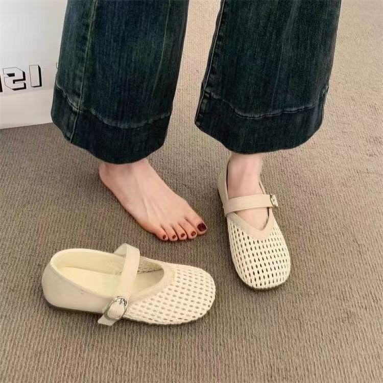 Mary Jane single shoes summer new flat-soled soft-soled mesh hollow shoes woven fishing net shoes sandals