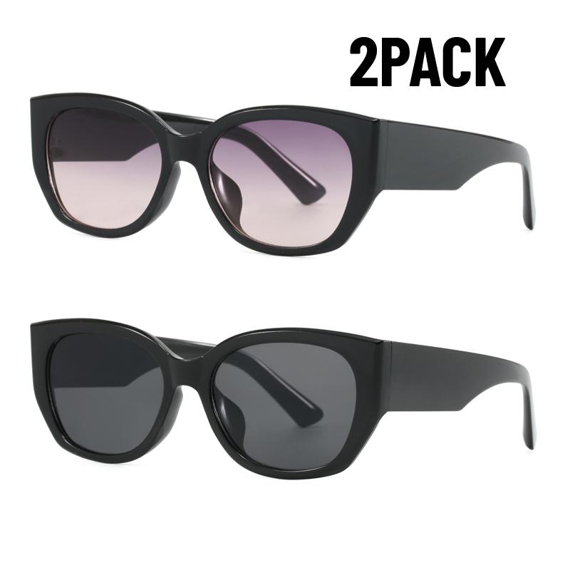 2PACK Fashion Rectangle Gradient Sunglasses Stylish Polygon Shades Big Frame UV400 Sun Glasses for Women