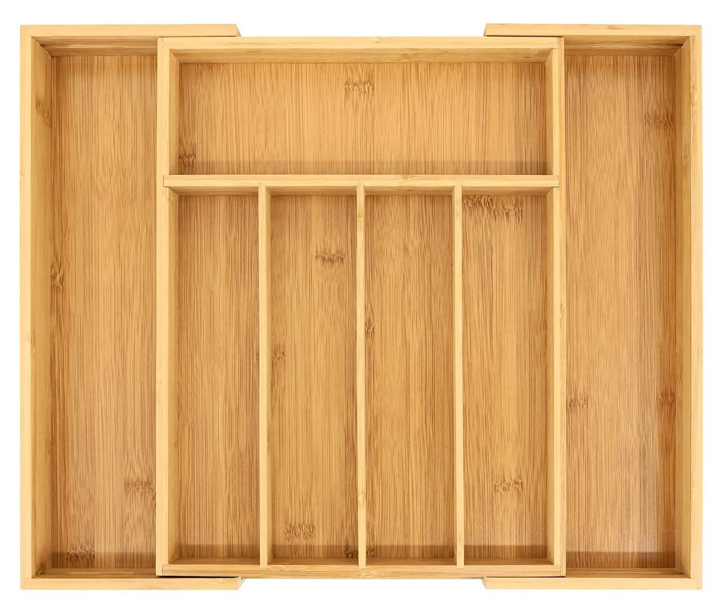 VaeFae Bamboo Silverware Organizer, Expandable Kitchen Drawer Organizer for Cutlery, Wooden Utensil Holder, Multifunctional Drawer Storage, 5-7 Compar