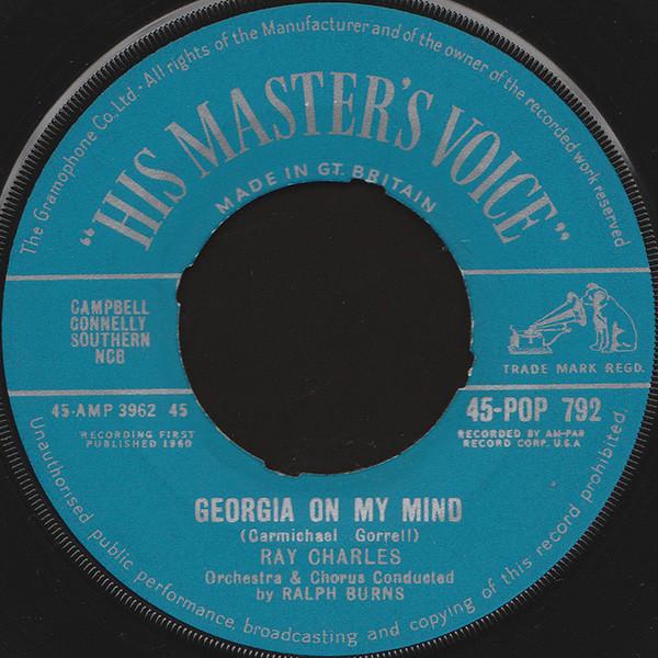 7inch Record RAY CHARLES Georgia On My Mind Carry Me Back 45POP792 His Masters Vo 1960 UK Rock Used