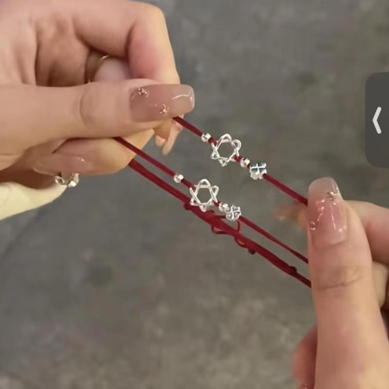 Pulseira Corda de Mão Vermelha Ajustável Trevo da Sorte Hexagrama para Meninas e Melhores Amigas