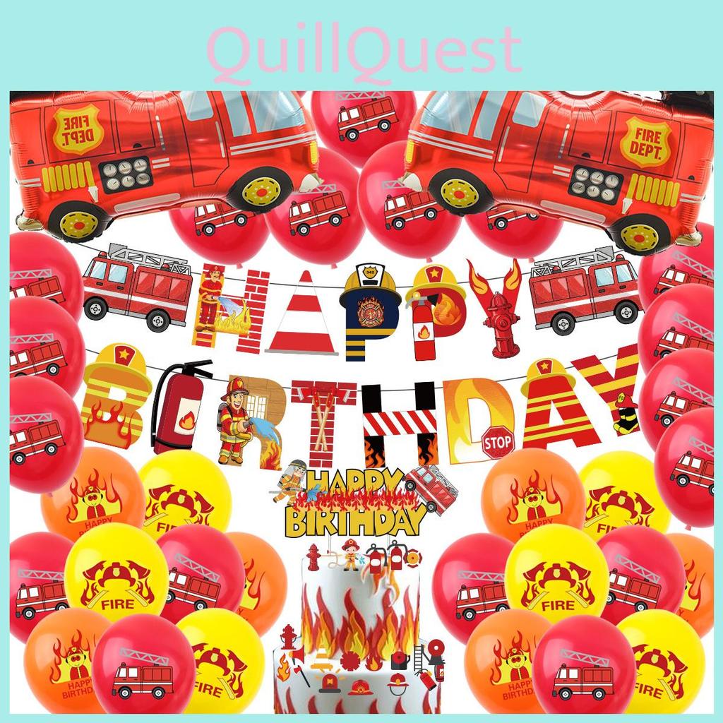 Firefighter Birthday Party Decorations With Scene Props And Aluminum Foil Balloon Bouquet