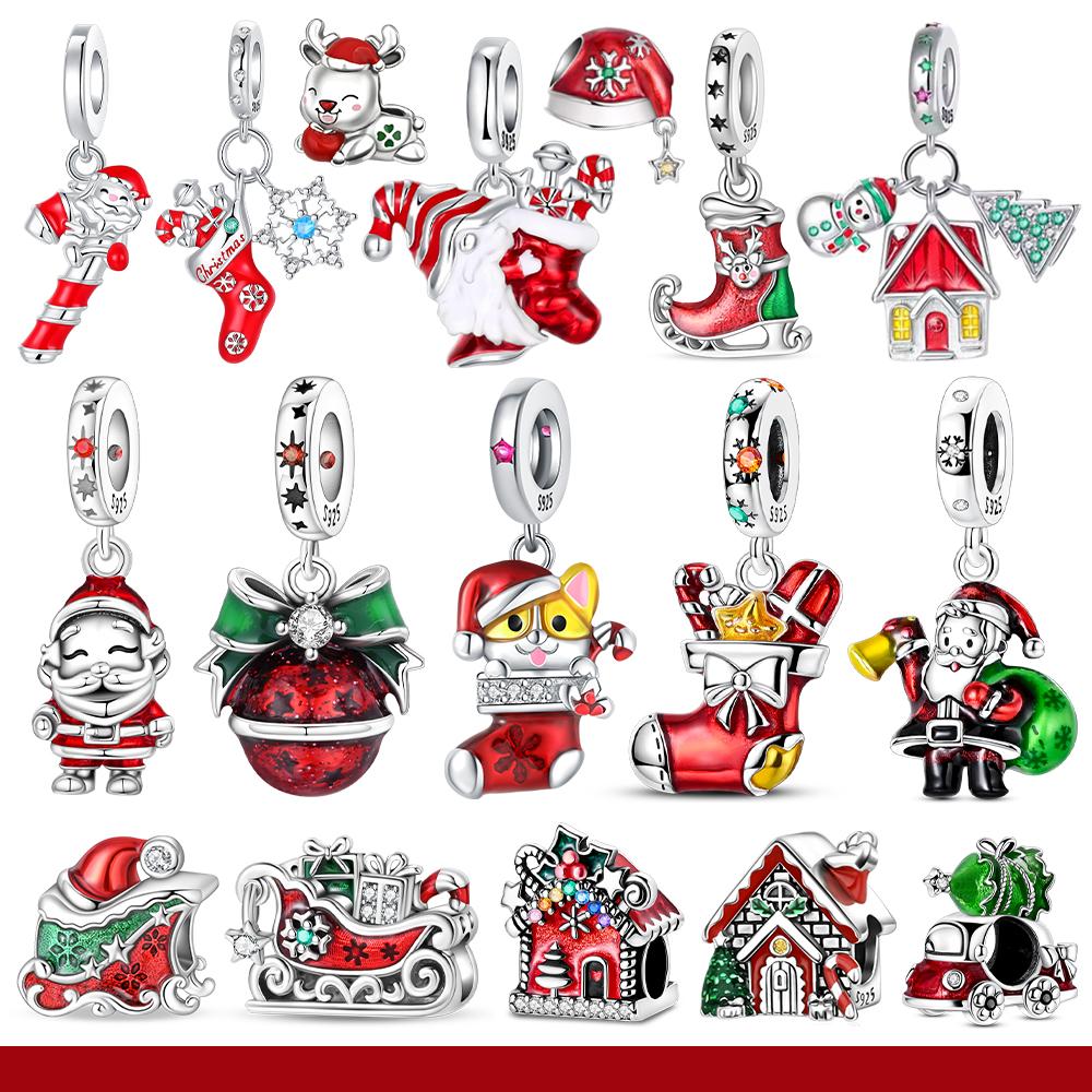 Christmas 925 Silver Santa Claus Red Socks Pendant Bead Original Pendants Bracelet Charm Jewelry Party DIY Trendy Gifts