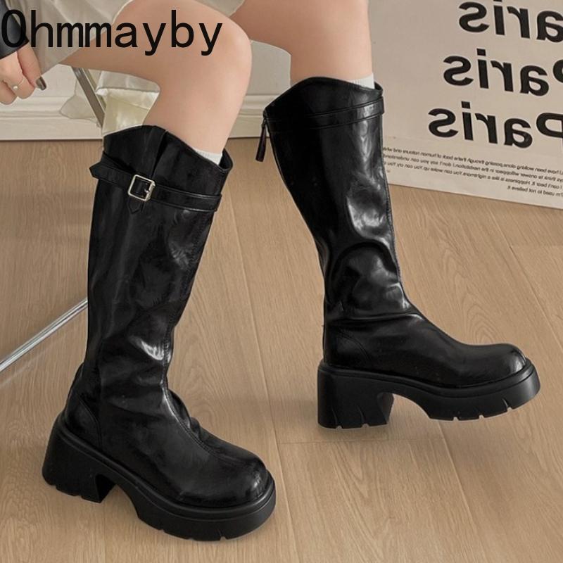 Winter Platform Thick Heel Women Knight High top Cosy Soft Leather Street Mordern Long Booties De Mujes