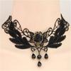 Fashion Women's Black Rose Teardrop Bead Pendant Lace Choker Lolita Collar Necklace