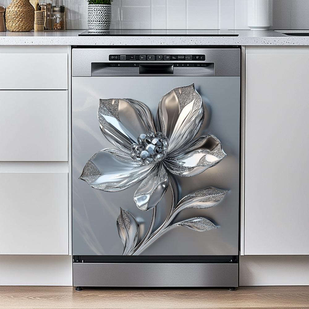 Decalque de Parede Metálico Elegante de Flores para Eletrodomésticos de Cozinha - Autoadesivo e Removível