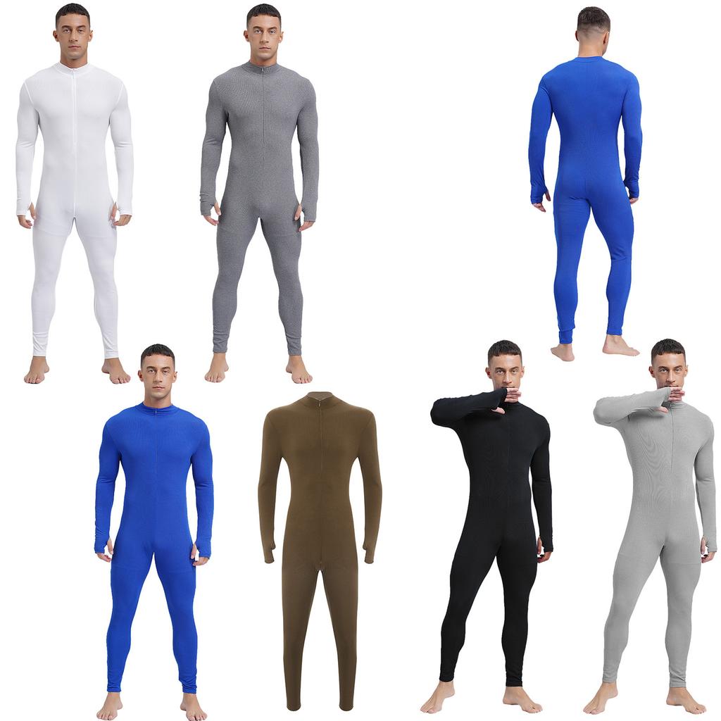 Macacão Unitário Listrado Masculino Gola Alta Manga Longa Calça Zíper Frontal Estilo Romper Roupa Esportiva Yoga
