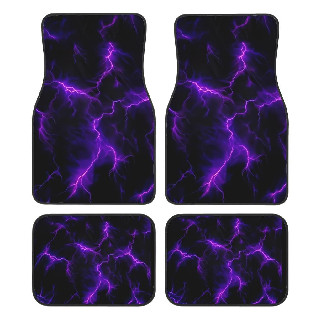4pcs Purple Lightning Pattern Car Mats - Polyester Material, Suitable for Sedans and SUVs, Stylish Interior Accessories, Gift