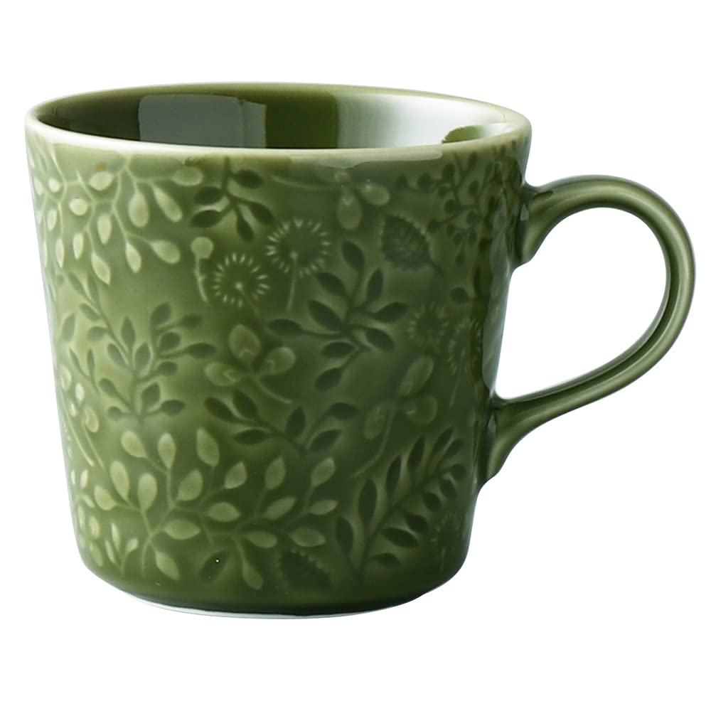NARUMI Anna Emilia Forest Floral Cute Relief and Dishwasher Made in Gift Mug, 350cc, Green, Print, Design, Large, Microwave, Oven, Safe, Japan, Boxed,