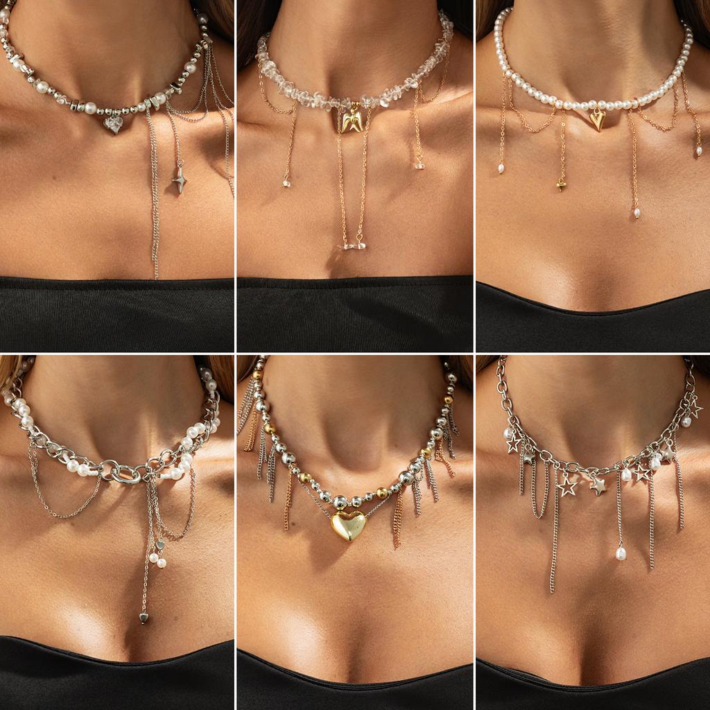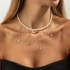 Shining Star Love Pendant Collarbone Chain Choker Light Luxury Imitation Pearl Chain Fringed Necklace
