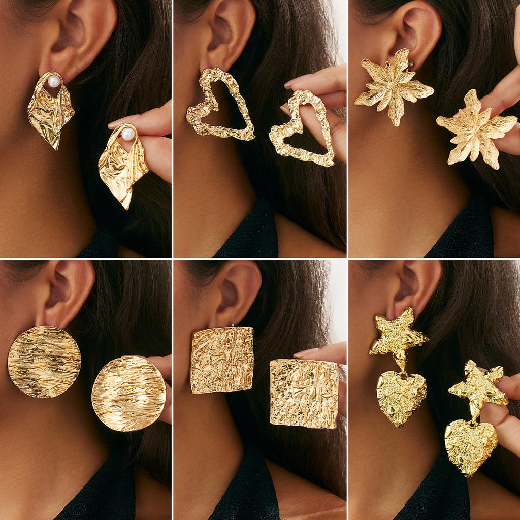 Liquid Lava Metal Folds Love Flower Stud Earrings Female, Wind Geometric Texture Round Earrings