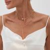 Wind Rice Grain Imitation Pearl Beaded Collarbone Necklace, Simple Metal Round Bead Chain Fringed Necklace