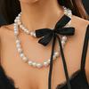 Wind French Retro Imitation Pearl Necklace Beaded Necklace Temperament Small Fragrant Wind Ribbon Bow Neck Chain