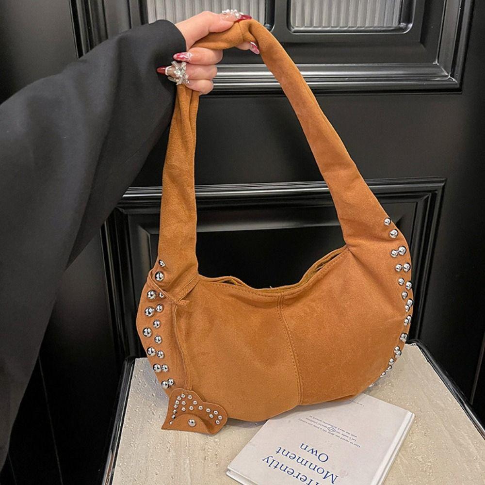 Large Capacity Locomotive Style Underarm Bag Fashion Design Rivet Shoulder Bag Girls