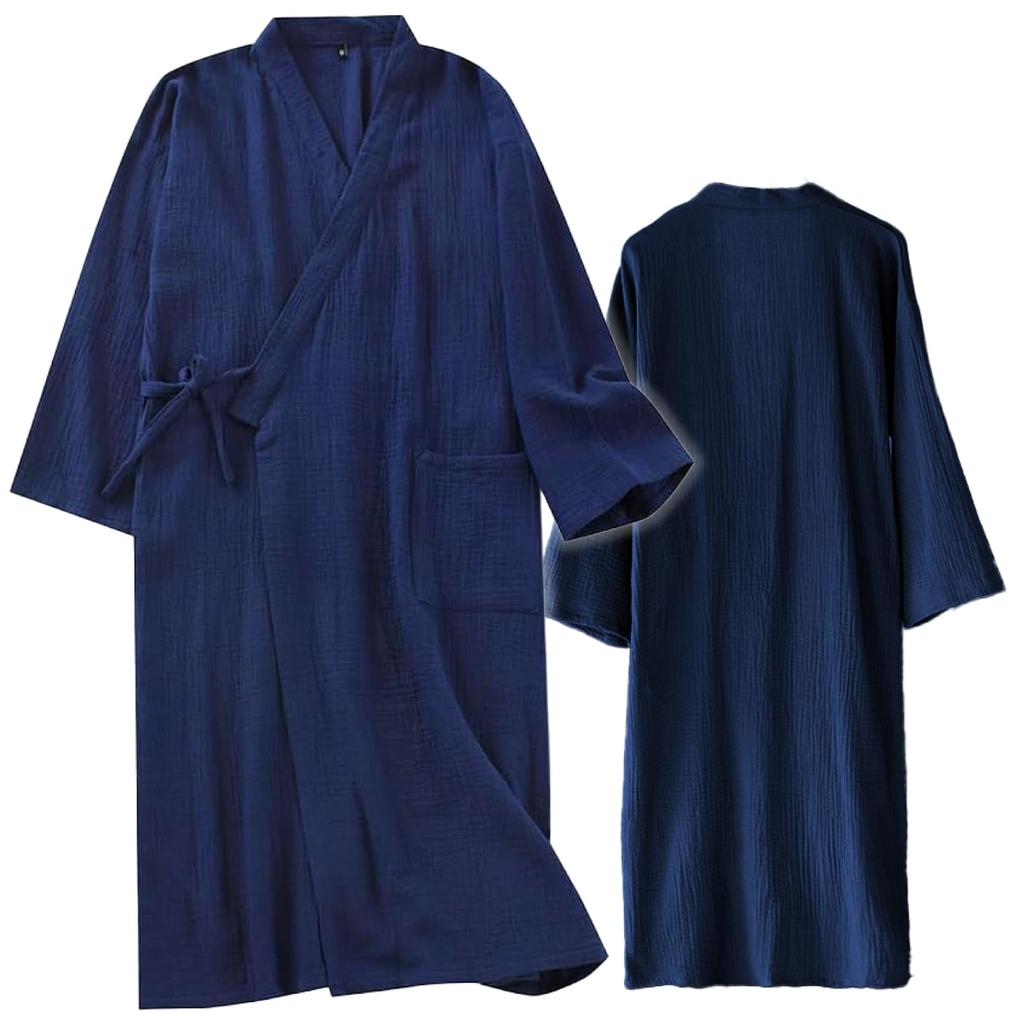Feito com gaze dupla, que é altamente respirável, absorve a umidade e é absorvente, é incrivelmente confortável e não fica abafado mesmo quando você sua.. Também serve como um roupão para vestir depois do banho. É leve e amacia a cada lavagem, tornando-o ideal para pessoas com pele sensível ou para uso a longo prazo.. Costurado cuidadosamente, mantém a sua forma e minimiza o risco de desbotamento da cor ou encolhimento após a lavagem.