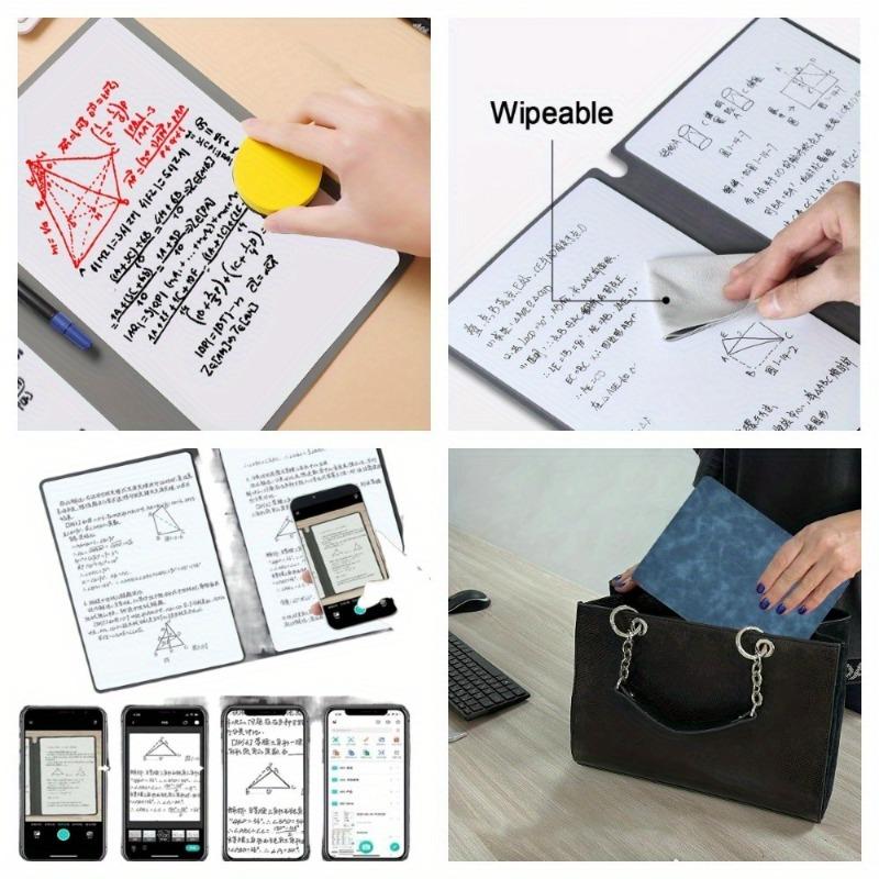 Reusable Dry Erase Notebook Set, Double Folding Whiteboard for Drafting Note Taking and Memos Includes Pen Wipes Sponge Eraser
