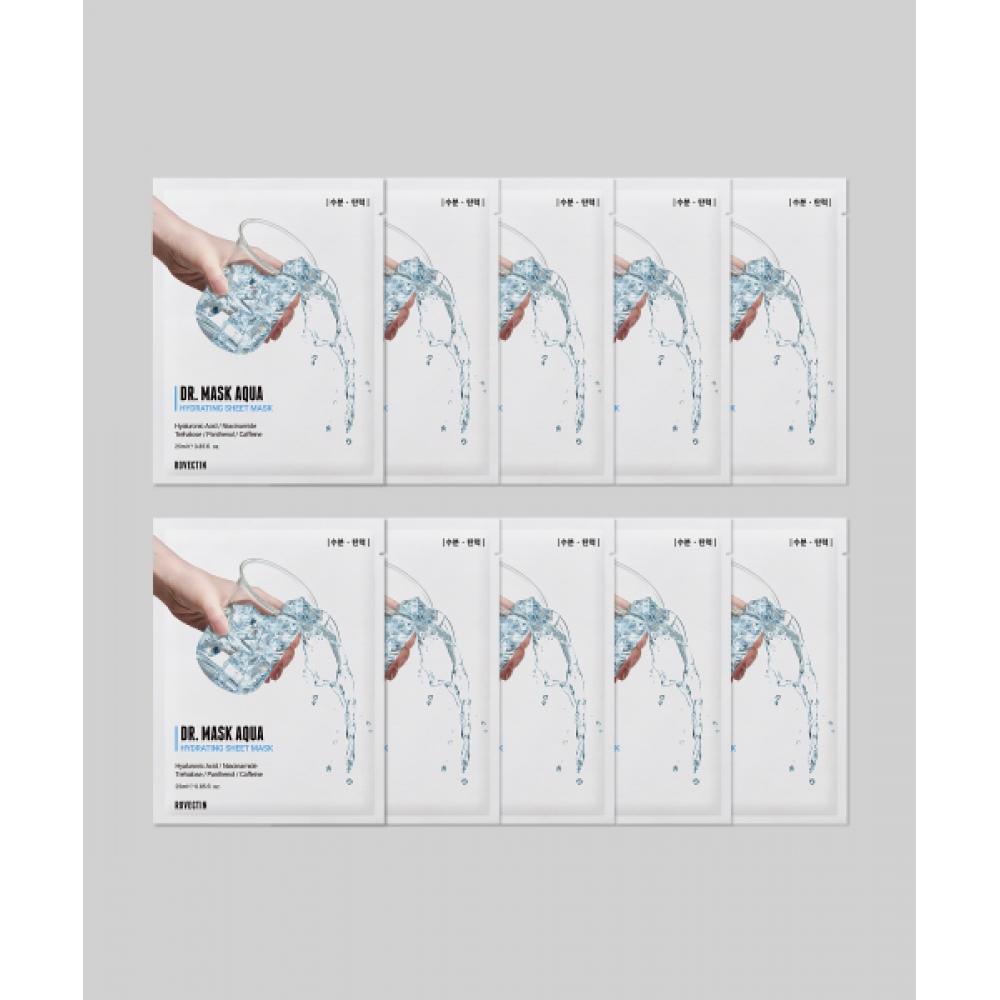 ROVECTIN Mask Aqua 10pcs (5pcs 2SET) employs 100% bamboo cellulose sheets that excel in adhesion and absorption, infusing the skin with a hydrating essence containing 7 types of hyaluronic acid. This water-retaining mask pack is known as a hydration bomb, making it comfortable to use even on sensitive skin. It delivers a smooth application with no stickiness.