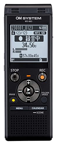 OM SYSTEM WS-883 BLK Recorder for Language Learning, Lecture Recording, Meeting Recording, Minutes, Linear PCM Recording, and External Memory Support