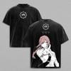 Chainsaw Man Makima Printed Tee Men Women Retro Washed T-shirts Oversized Cotton T Shirt Short Sleeve Clothing Harajuku Tshirt
