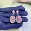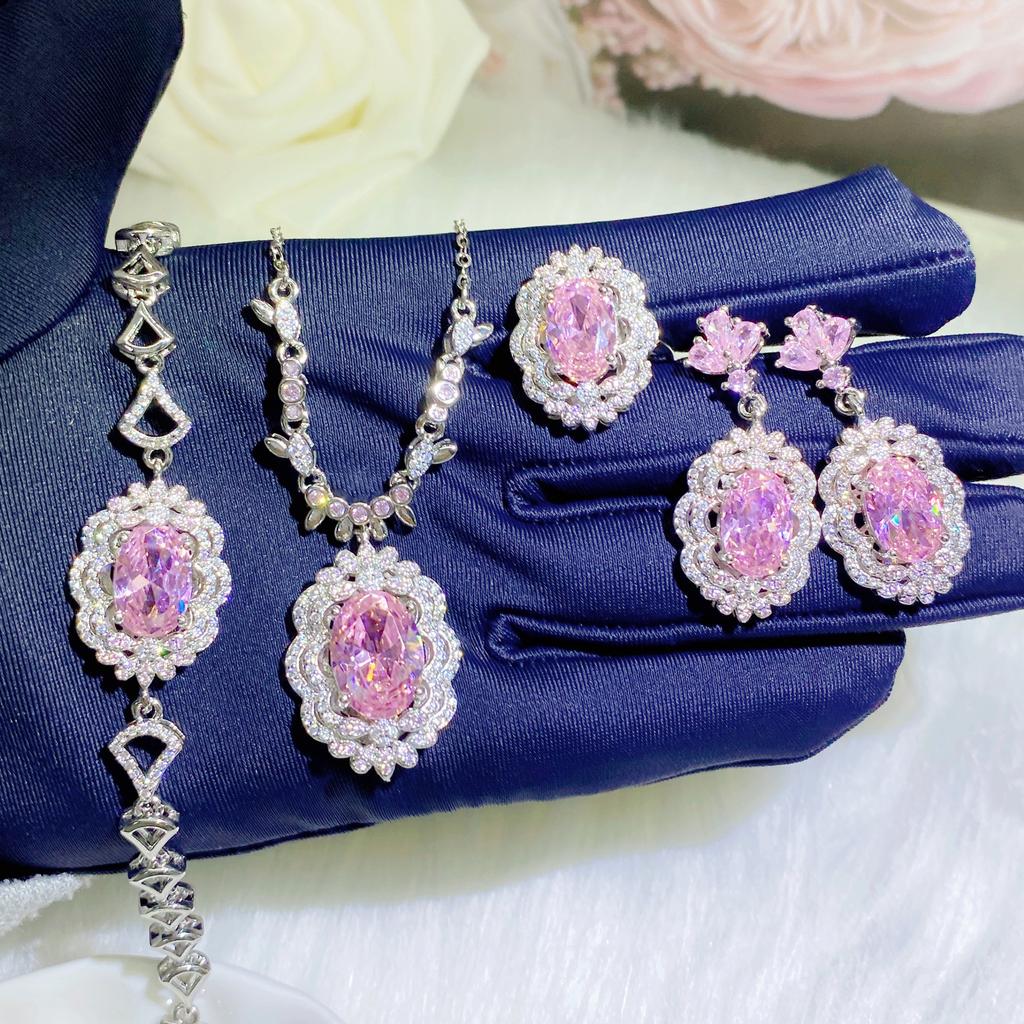 2026 Luxo Premium Sensação Rosa Doce Diamante Colar Anel Aberto Brincos de Tarraxa Cheios de Diamante Pulseira Tesouro Colorido Rosa Flor de Cerejeira