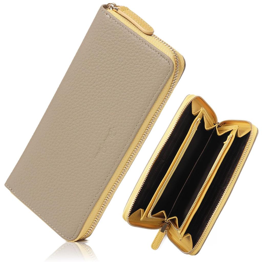 Blanc Pomme Women's Genuine Leather Long Wallet, Two-Tone Design, Large Capacity, Greige, bp-1067