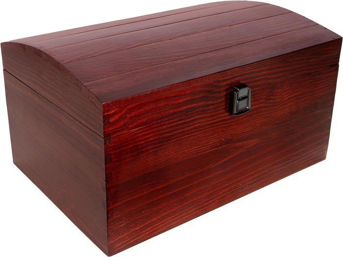 Coffre Boîte de Rangement - Creative Deco - Bois Rouge - 34,5 x 25 x 19,2 cm - Fermoir - Couvercle Courbé