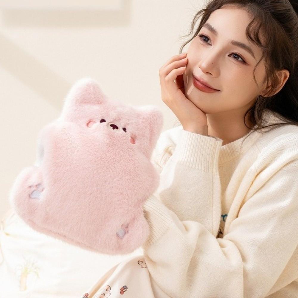 Plush Cover Hot Water Bottle Cartoon Water Injection Bag Portable Plush Hand Warmer Belly Warmer