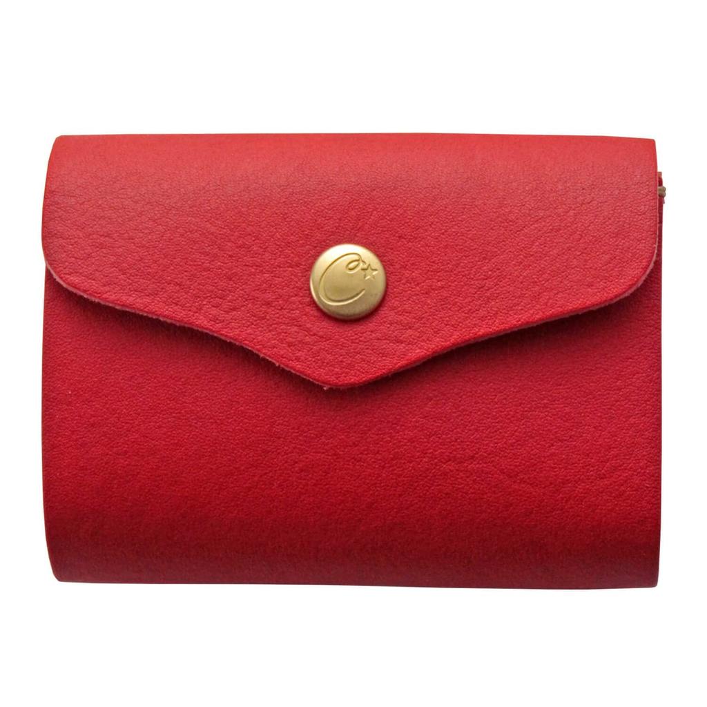 Carteira Tripla CHAM Himeji de Couro Breath Light, Mini Carteira, cmvl-007, Carteira para Notas Sem Dobra, Couro, Vermelho, 7,5 cm x 10,0 cm x 3,0 cm