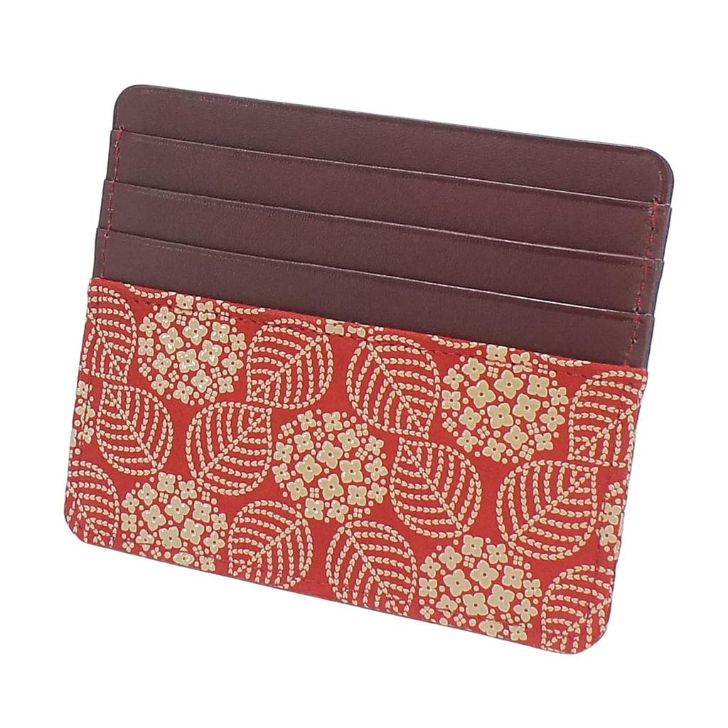 Porta-cartões fino Indenya, Fino, Couro de veado com laca vermelha e branca, Padrão de hortênsia, 2530-13-174