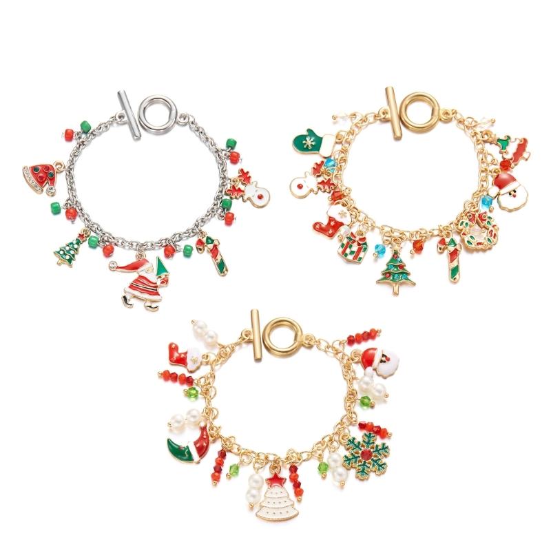 Pulseira de Pingente de Rena do Papai Noel Festiva para Árvore de Natal Corrente de Pulso de Liga Joia Pulseira Presente de Feriado para Mulheres Acessório de Festa
